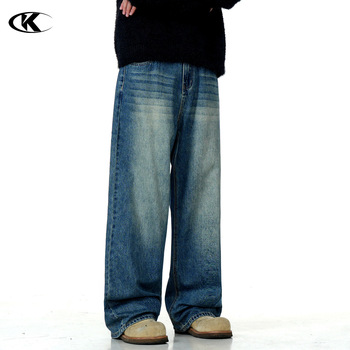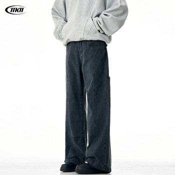 11KN American Retro Straight Cargo Pantalones para hombres Mujeres Desgastado Washed Denim Trendy Loose Casual Pantalones largos de pierna ancha Verano