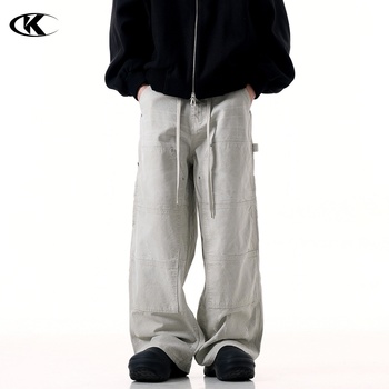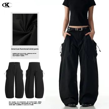 11KN American Retro Unisex Deportes Pantalones casuales Bolsillo grande Cordón Medio recto Suelto Pierna ancha Hasta el suelo Peinado